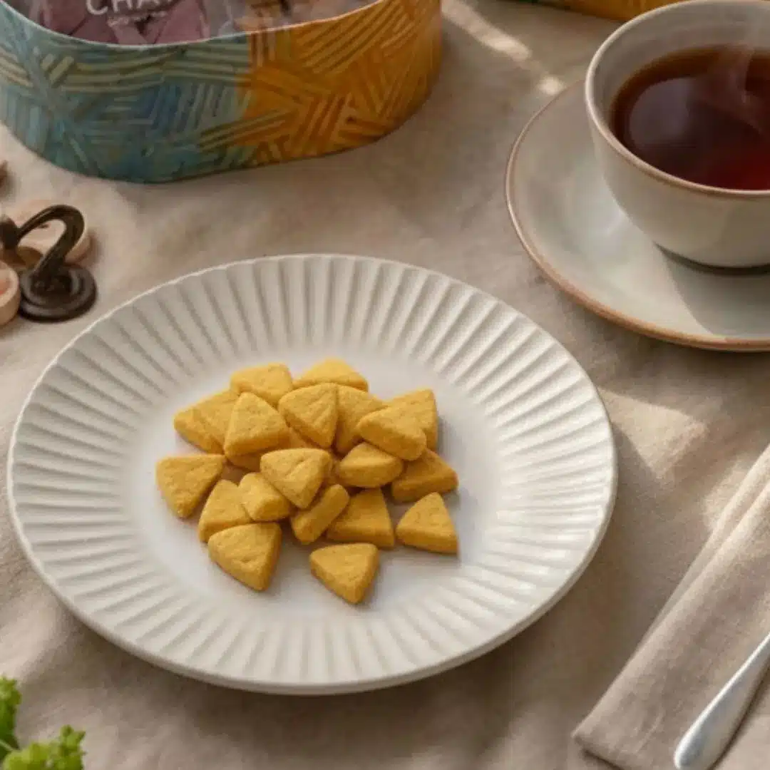 このクッキー、ペットとも一緒に楽しめるのが魅力のひとつ。人間用としてしっかりおいしく、それでいて塩分・糖分・油脂を最小限に抑えているため、犬や猫などのペットにも安心。家族みんなで分かち合えるスイーツです。