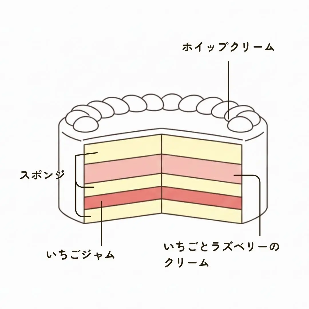 クリームには豆乳を使用し、ケーキの間には甘酸っぱいいちごとラズベリーのピューレを練り込んだ、ほんのりピンク色のヴィーガンクリームをサンド。シンプルな中に、やさしく広がる果実の風味がアクセントになっています。