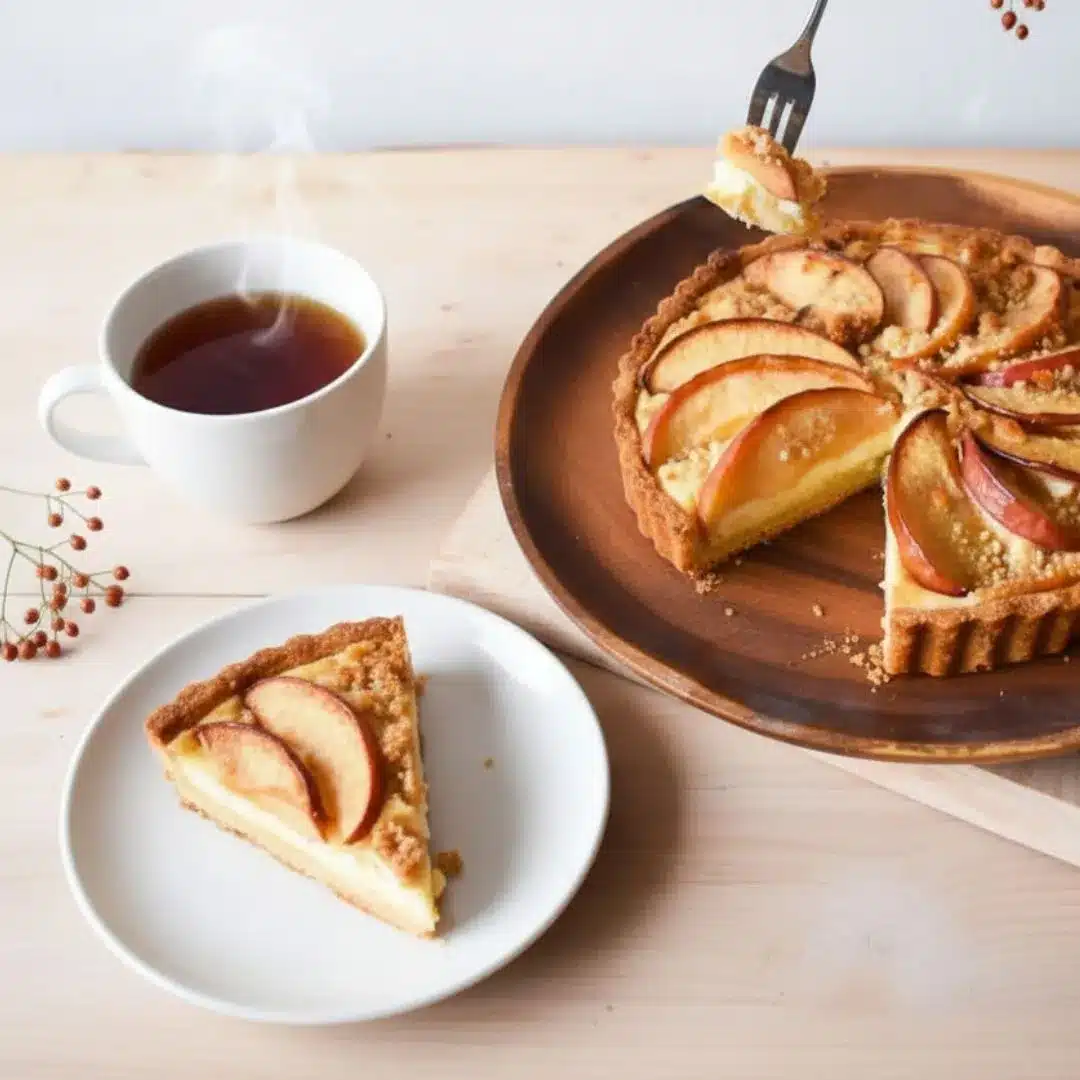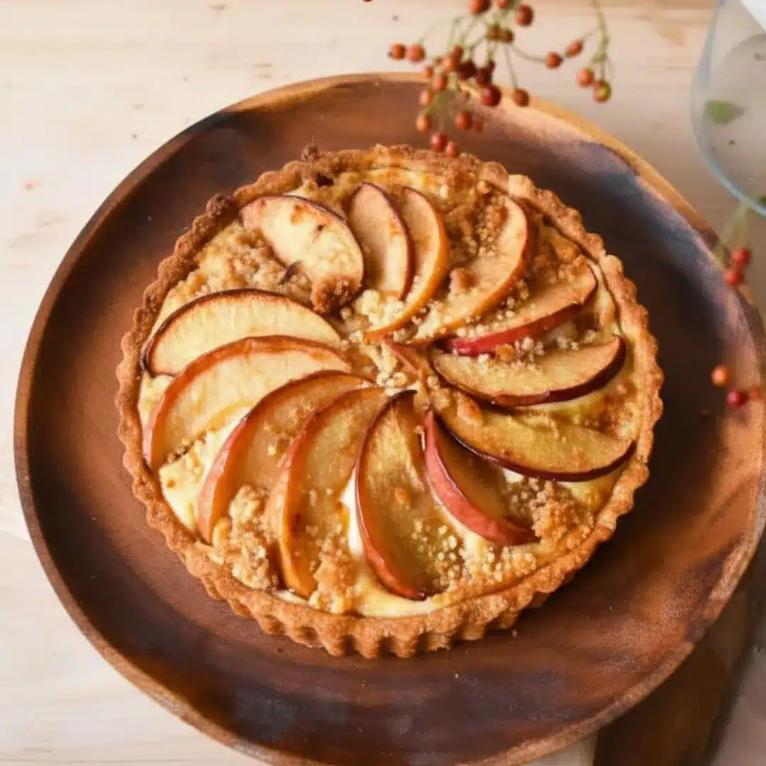 ザクザクとした食感のタルト生地に、ほんのり塩気のあるクランブルを重ねることで、りんごの甘みがより一層引き立ちます。素朴でいて奥深い味わいが魅力です。