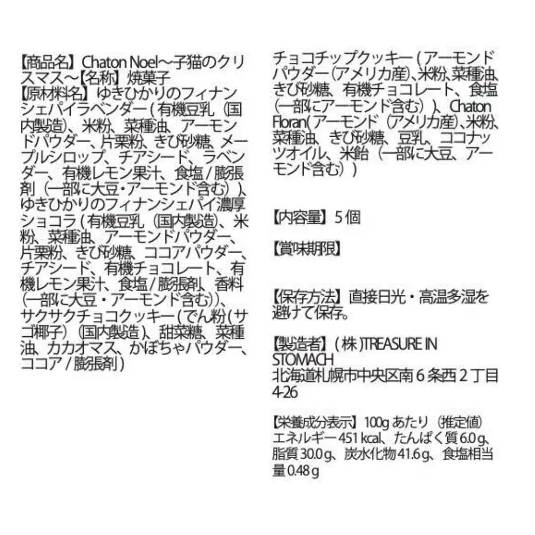 「子猫のクリスマス」を意味する「Chaton Noël」は、見た目にも味わいにも癒される、冬限定の焼き菓子ギフトセット。やさしい素材でひとつひとつ丁寧に焼き上げた、季節だけの特別なラインナップです。
