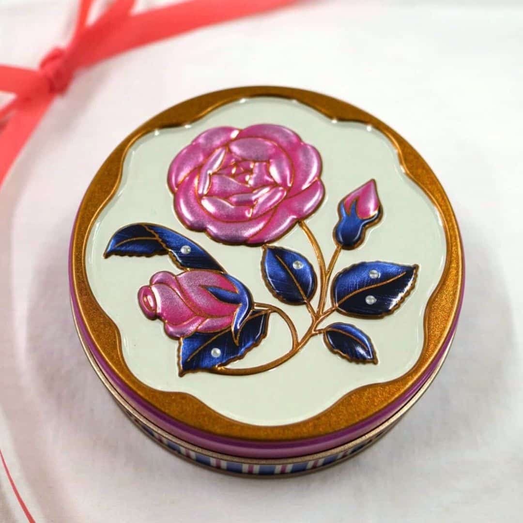 高級感のある薔薇モチーフの缶に詰めて、上品さと可愛らしさを兼ね備えた装いに。開けた瞬間からときめきを感じられるデザインで、贈る時間まで特別に演出します。