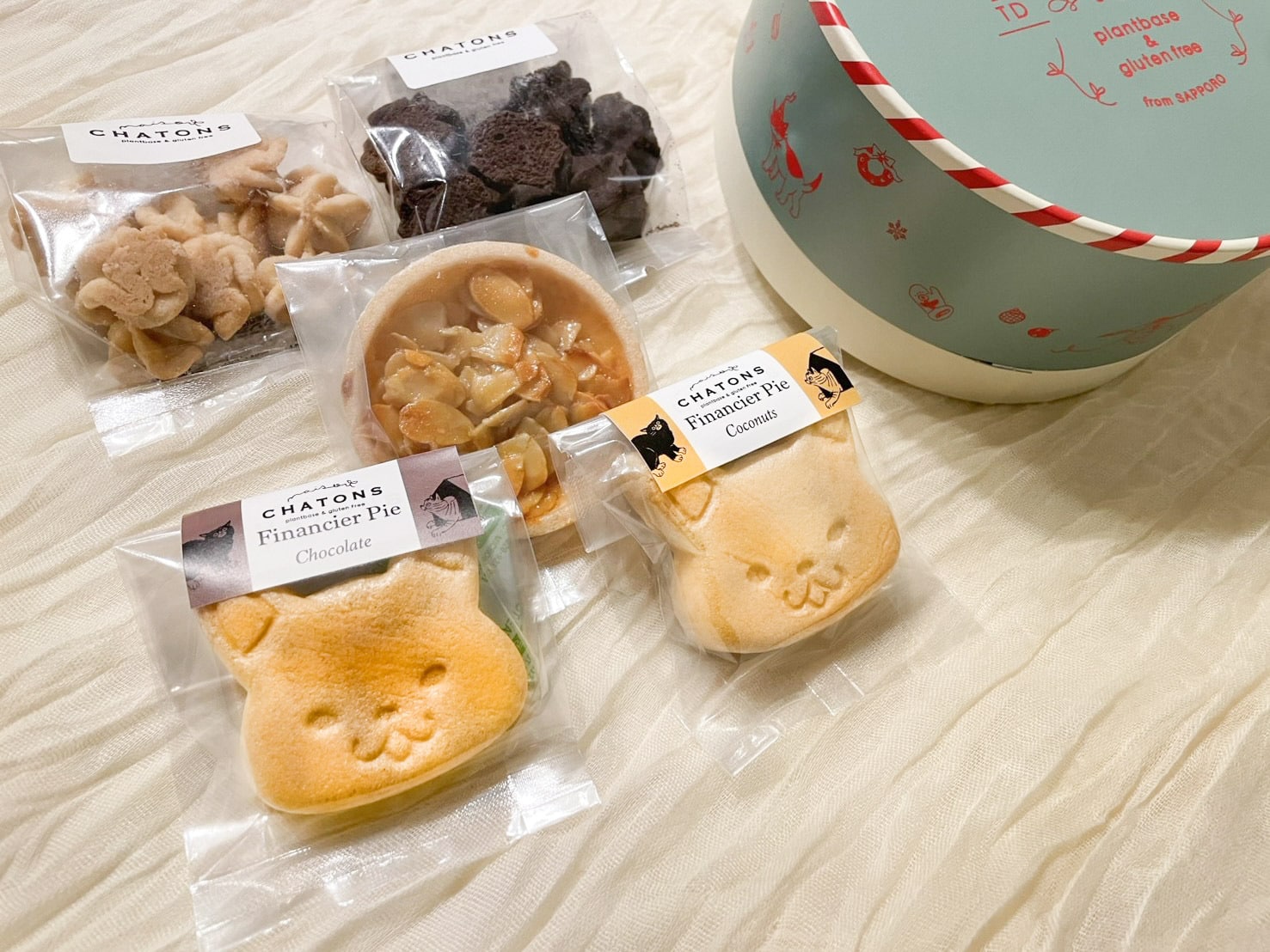 アーモンドパウダー(アメリカ産)、米粉、菜種油、きび砂糖、チョコレート、食塩(一部にアーモンド含む)